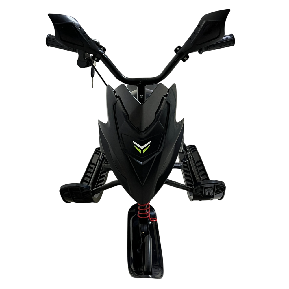 Мотор-колесо мощностью 500 Вт разгоняет самокат до 20–40 км/ч (в зависимости от условий), что подходит для детского катания, но снижает энергоэффективность на подъемах или при полной нагрузке до 80 кг. Аккумулятор 36V 8 Ah заряжается 4–5 часов без быстрой зарядки, обеспечивая до 2 часов работы или 10–15 км пробега в реальных условиях на ровном снегу; в режиме экономии дальность растет, но режимов езды нет. Барабанный или ножной тормоз эффективен на низких скоростях, энергоэффективность повышается за счет амортизаторов, минимизирующих потери на неровностях.​