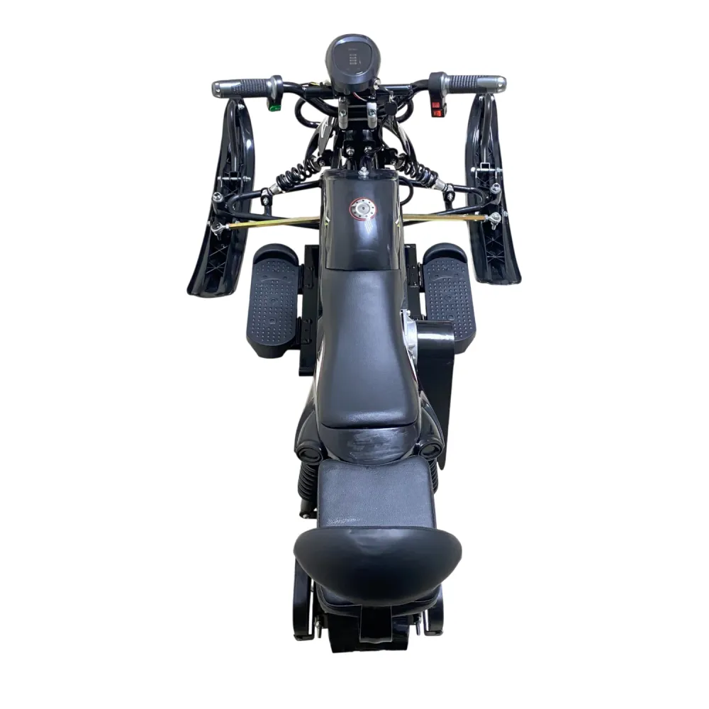 Конструкция прочная и устойчивая, материалы высококачественные, что гарантирует долговечность. Сиденье мягкое и эргономичное для комфортного катания. Габариты позволяют удобно хранить и перевозить снегокат, но складного механизма нет. На панели управления отображаются основные параметры: скорость, заряд аккумулятора и режим работы. Управление интуитивно понятное.