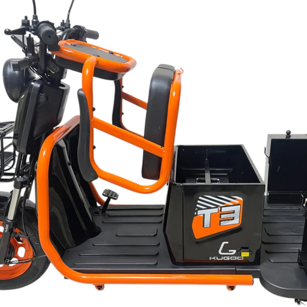 Kugoo T3 — флагманский трицикл с энергоэффективным мотором, премиум-подвеской и расширенной комплектацией. Это больше, чем транспорт — это комфорт и мобильность нового поколения.