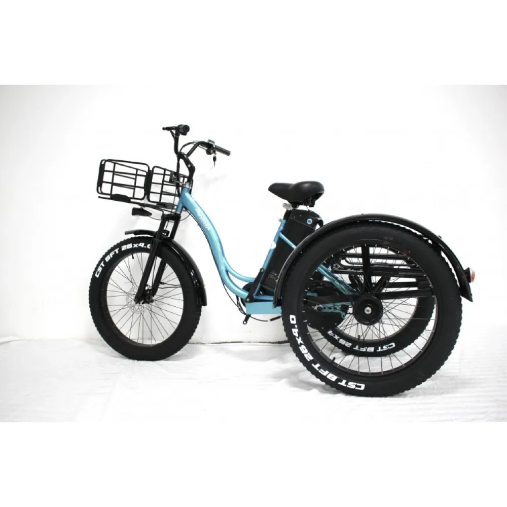 Электровелосипед GreenCamel Трайк-F (R26FAT 1000W 48V 20.3Ah) колесами FAT –востребованный вариант техники. Изготовлен в классических цветовых оттенках, не имеет ничего лишнего, прост в обслуживании и управлении. Купить электровелосипед сейчас, при приемлемой стоимости предлагает наш интернет-магазин.