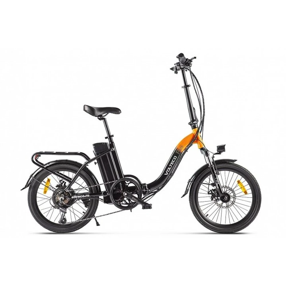 Данная модель электровелосипеда VOLTECO FLEX UP черно-оранжевого цвета,  практичен качествен и очевидно, что она будет использоваться ещё не одним поколением. Как выбрать?   Да очень просто.  Нужно определиться с целевым назначением?  Он подойдёт для любого случая,  для использования в черте города, для прогулки  на природе,  чтобы добираться до рабочего места, на случай если любите активный отдых, используется для помощи в домашнем хозяйстве, для пикников. Оборудован багажником, что позволяет перевозить ребёнка или тяжёлые предметы и сумки. Благодаря своей  уникальности   в конструкции, выглядит очень стильно.